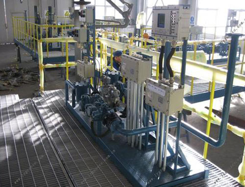 油品定量裝車橇裝組是指將每一個裝車鶴位內的儀表和設備集成在一個專用的框架結構內,儀表和設備包括裝車鶴管、流量計、防溢油靜電報警控制器、壓力變送器、裝車流量控制閥、緊急切斷閥,裝車泵、批量控制器等, 只預留工藝連接口和控制電源和通訊接口,這個整體集成部分稱為裝車橇。與傳統的裝車控制系統就地組裝比較,裝車橇可以節省現場設計和現場施工量,縮短項目工期,提高裝車控制系統的質量。